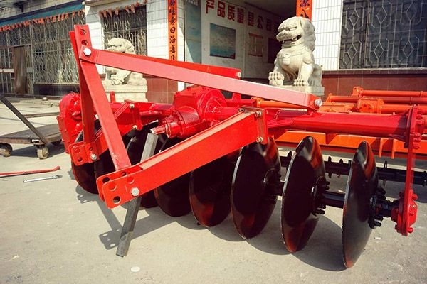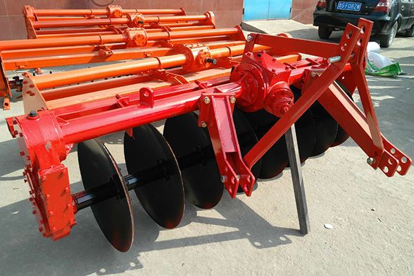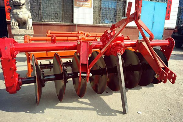 驅動圓盤犁采用拖拉機后三點懸掛機構進行掛接,機具在工作過程中通過拖拉機后動力輸出軸(PTO)將動力傳遞到圓盤犁齒輪箱中,來驅動圓盤犁進行旋轉。該驅動圓盤犁主要適用于水田耕作,具有不纏草,作業質量高,工作效率高的特點。